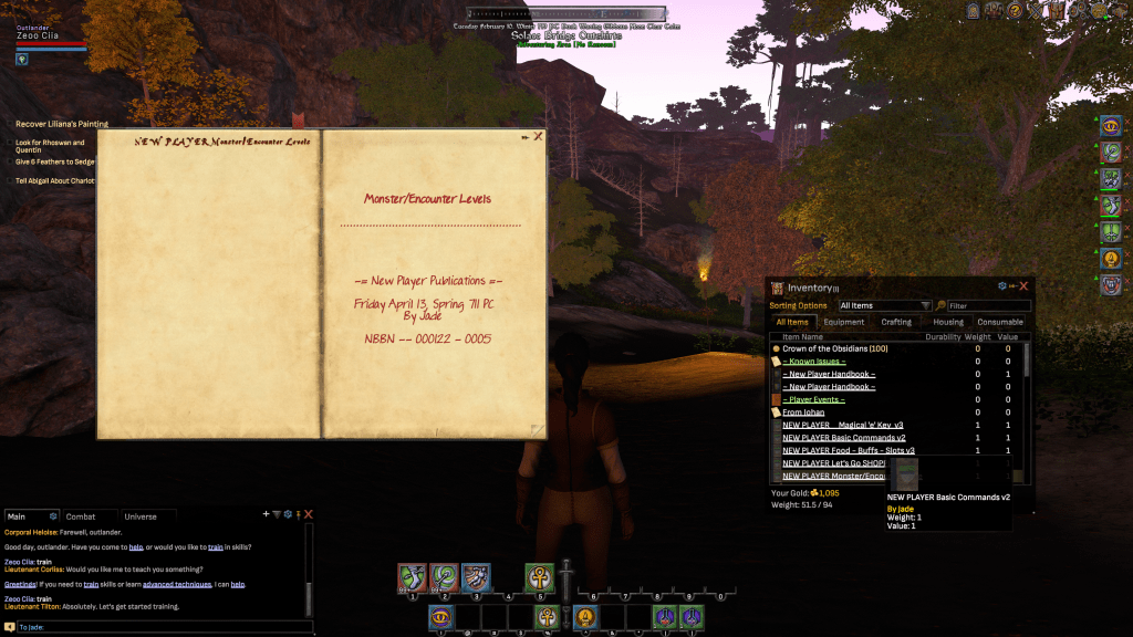 As I was running around completing fairly rote MMO quests, I received a message from a player. They said hello and asked if I was new to the game. I said yes and they offered to give me an overview and some game basics. Grateful, I took them up on this. They let me know that the playerbase was predominantly older, ex-Ultima Online players. They also gave me some in-game books they had written containing new player guides.