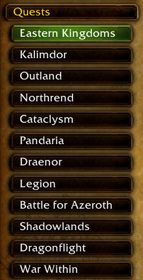 So all that said, I have this new character, a Void Elf protection warrior tank. When it came time to start levelling her, I knew I didn’t want to do the Dragonflight –> TWW path again, so I decided to set things all the way back to The Burning Crusade and go from there. Then the question was “so what exactly should I do?” and I decided to use achievements as a guide.