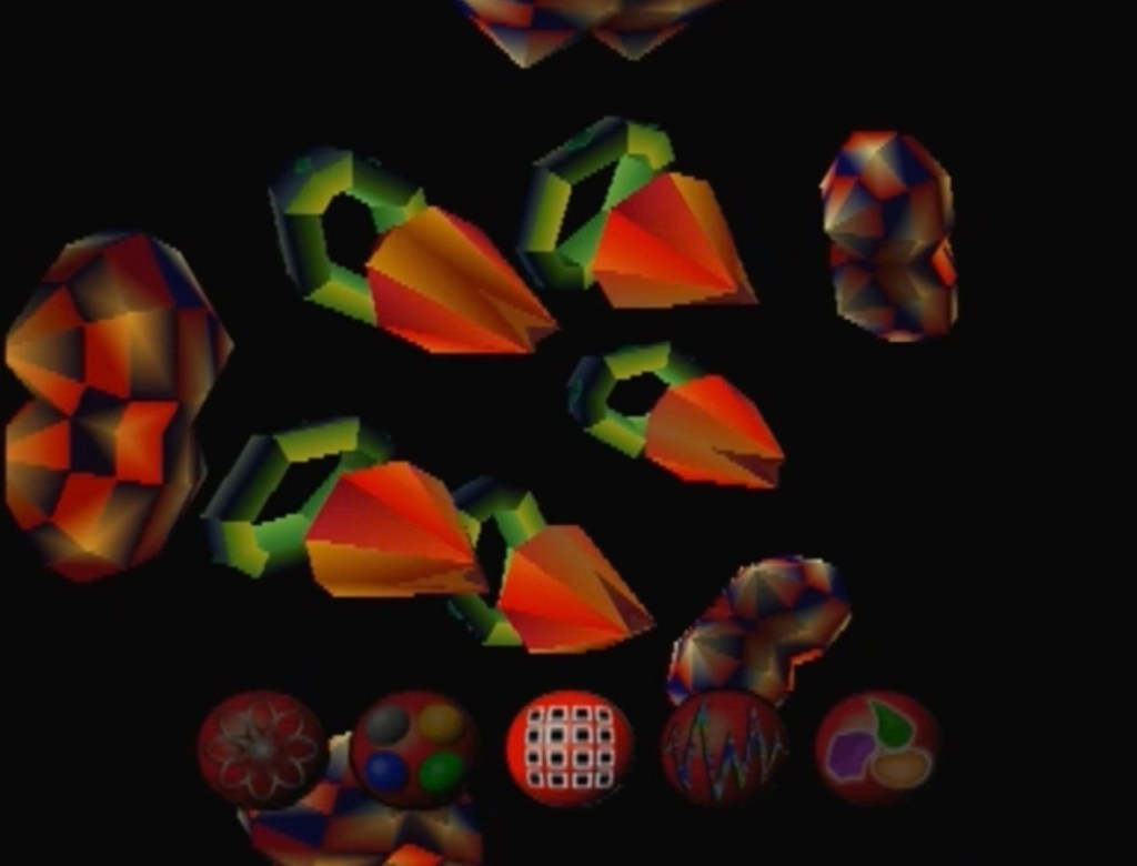 Baby Universe is a digital kaleidoscope and music visualizer for the PS1. You start the game, swap in a music CD, and let Baby Universe go to work. There’s not much to “play” here, but a simple joy can be found in swapping between visuals to fit the song you are playing.