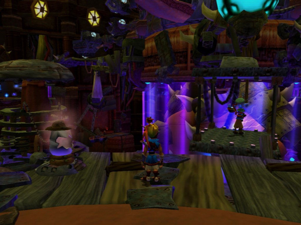 The only area where Jak and Daxter’s presentation falters is in the (unskippable) cutscenes. The game actually has some interesting lore and thoughtful world-building, but the cutscenes undermine this with irritating characters and grating humor. The “hillbilly” characters are particularly painful, and no amount of snide comments from Daxter can help make those cutscenes more bearable (it actually makes them worse). However, I will say Jak as a silent protagonist works well here, as he has some extremely impressively-animated reactions.