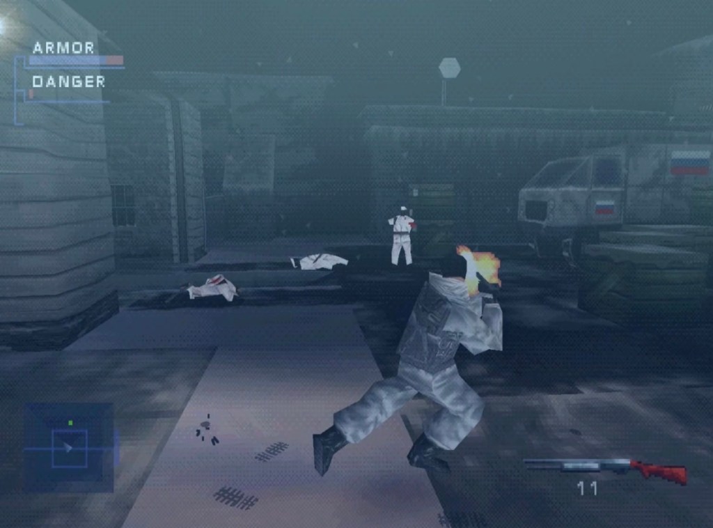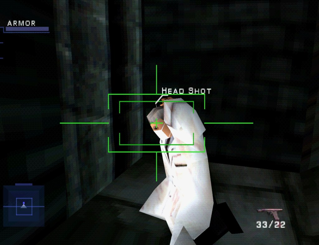 The developers (Eidetic, developers of Bubsy 3D who would later become Bend Studio) do give you some useful tools for combat, like a radar. There are also rudimentary auto-aim and lock-on features. However, later in the game, most enemies will be wearing flak jackets which make those two features essentially useless. During these shootouts you’re expected to aim manually in order to get headshots, which do become somewhat easier with practice (and are immensely satisfying).