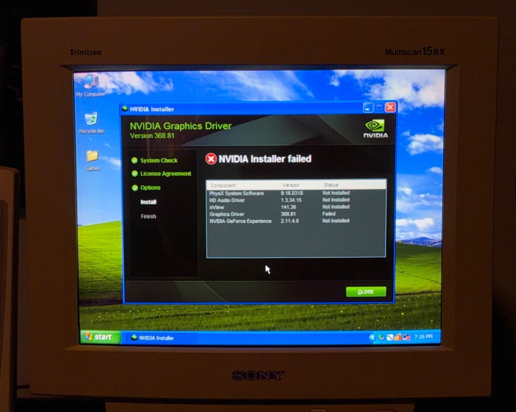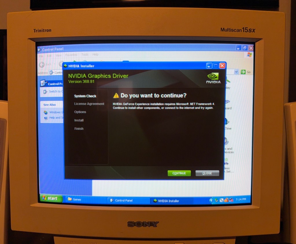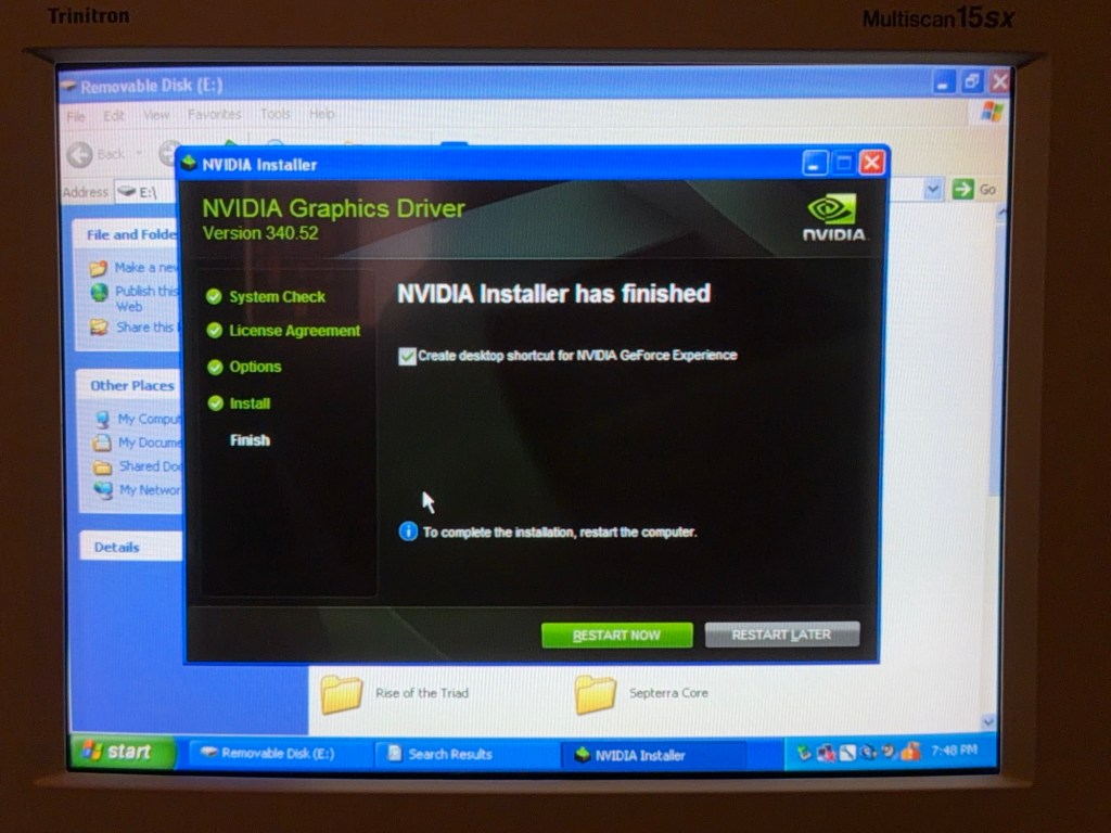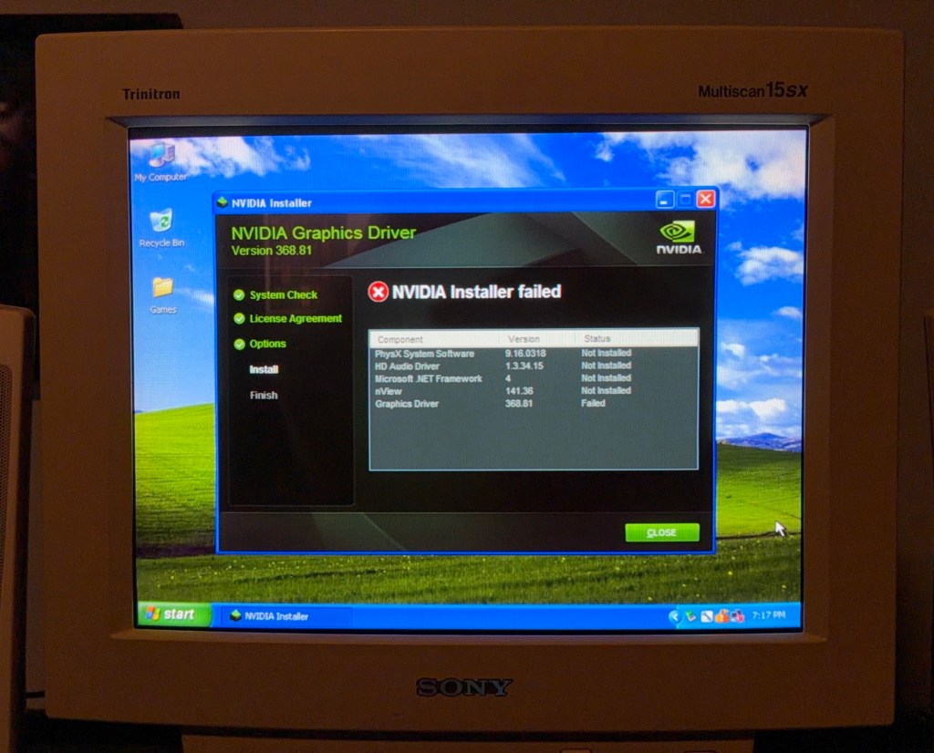 With this in mind, I went hunting for earlier WinXP NVIDIA drivers. I went with the 340.52 driver from 2014…